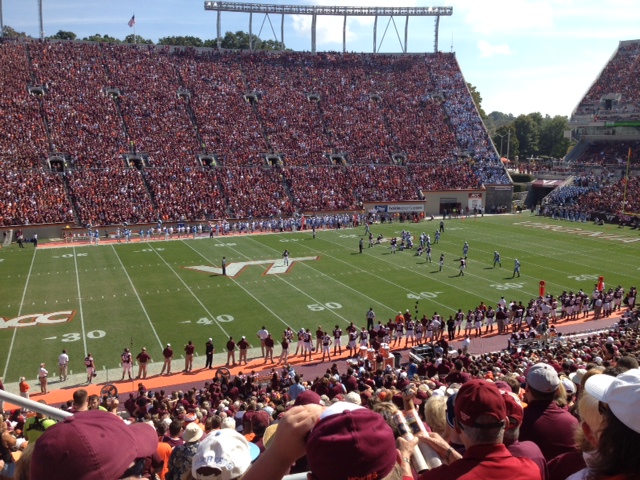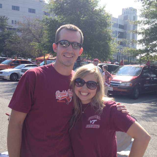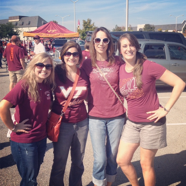 Matt and I usually attend one Virginia Tech football game a year. It’s become sort of a tradition in our relationship, and we have so much fun tailgating & cheering on the Hokies with friends! Over the summer when we picked the Oct 5th game vs. UNC, I pictured jackets, scarfs & boots. Welp, instead I got capris, flip-flops & sunburn! The weather was crazy! Here’s a few weekend highlights: